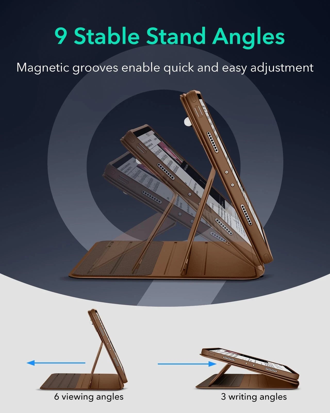 Ja. Diese Hülle verfügt über 9 stabile Standwinkel und 6 einzigartige Nutzungsmodi, mit denen du den für dich perfekten Winkel vom Quer- bis zum Hochformat wählen kannst, um das freihändige Betrachten, Surfen, FaceTiming, Spielen, Schreiben und mehr zu erleichtern.