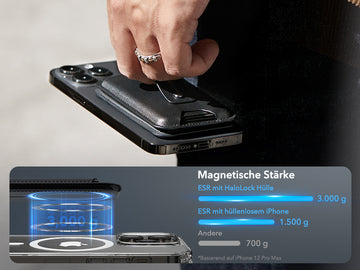 Genieße einen Magnetverschluss an deinem Handy, der mehr als doppelt so stark ist wie der offizielle MagSafe Wallet. Dank leistungsstarker integrierter Magnete mit 1.500 g Haltekraft. Gehe unbesorgt durch den Tag mit dem Gewissen, dass deine wichtigsten Gegenstände für die Fahrt gesichert sind.