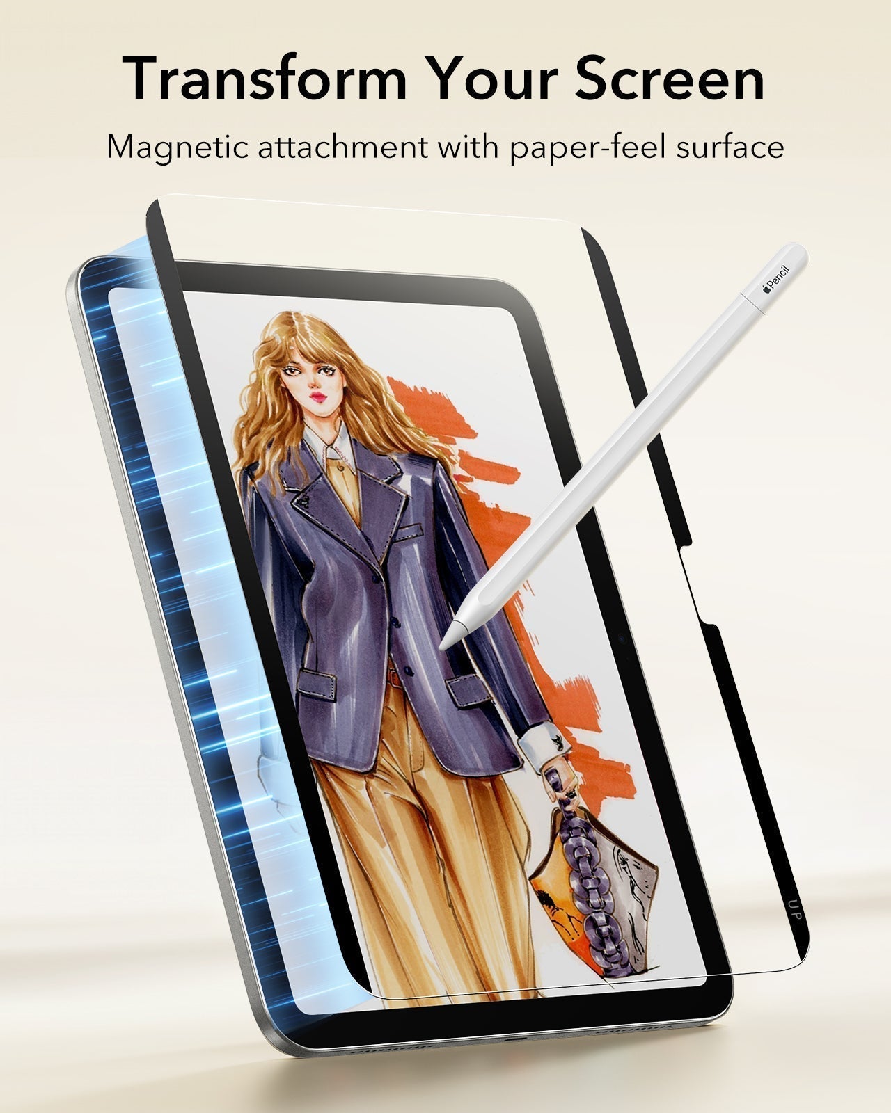 Bewahre magnetische Paper Feel Displayschutzfolie im Umschlag auf, wenn du unterwegs bist.
