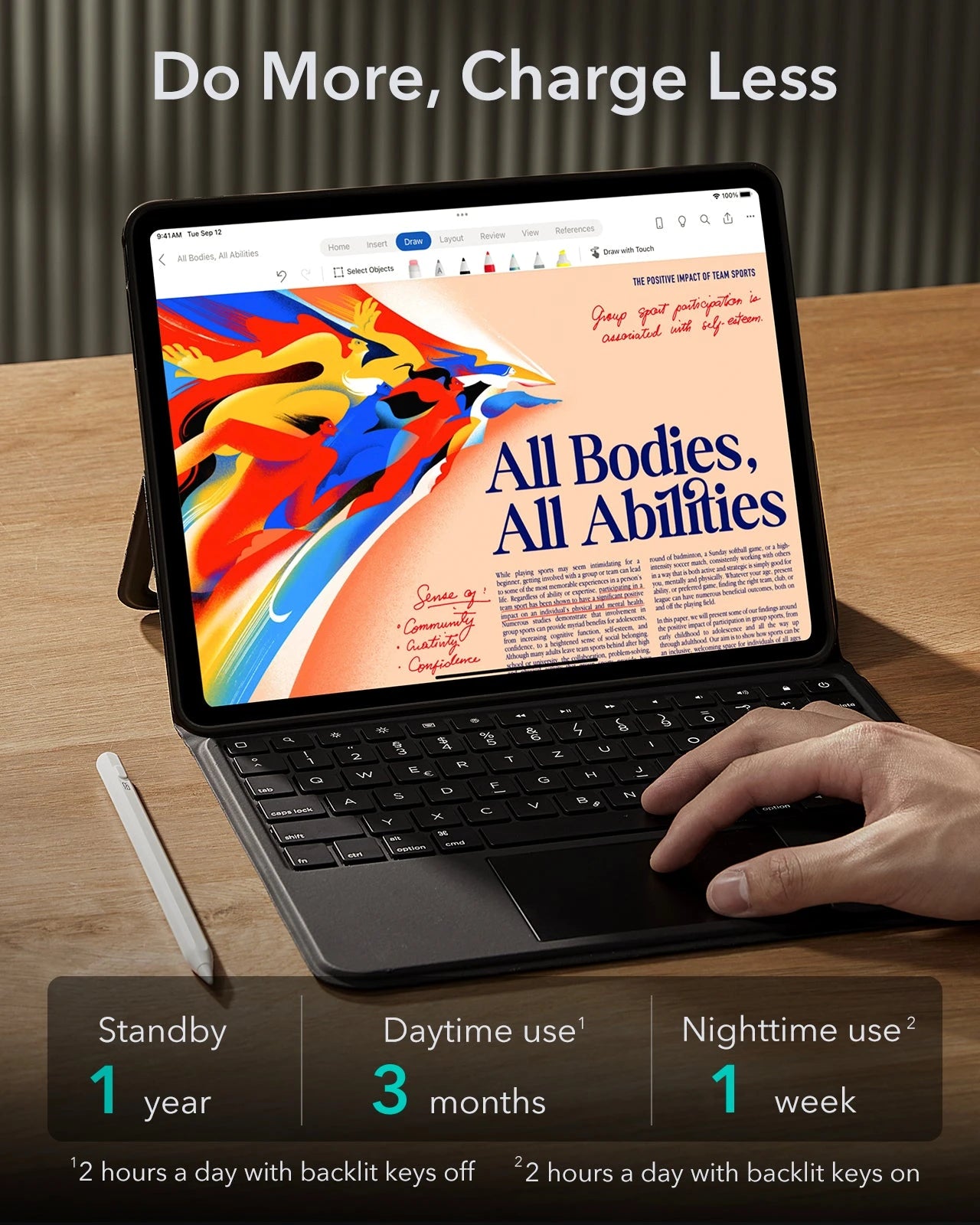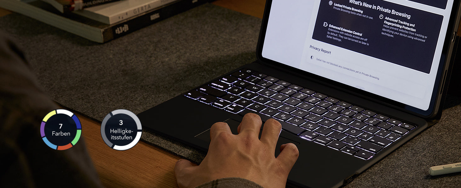 Erledige mehr mit dieser Tastaturhülle mit Mehrfachwinkelverstellung, mit der du im Hoch- und Querformat arbeiten kannst