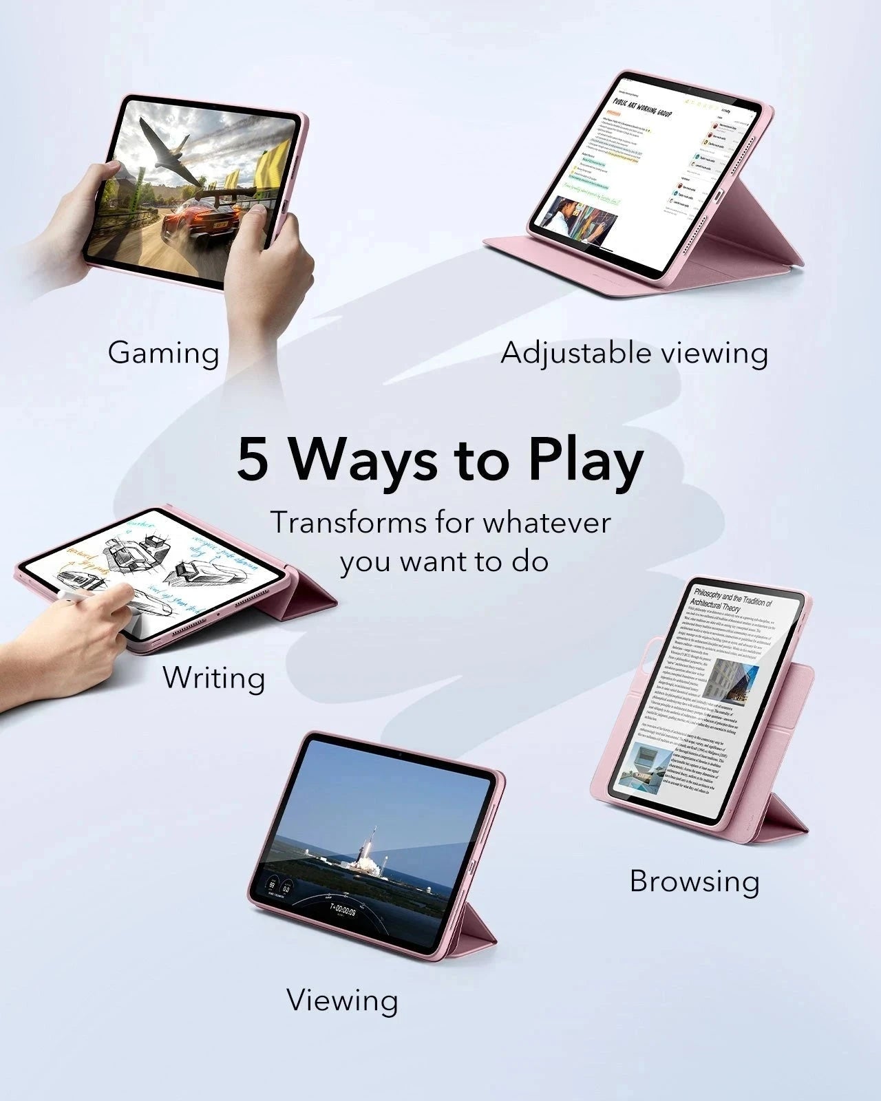 Kombination aus transparenter Rückseite und abnehmbarer Magnetabdeckung – bietet dir 6 vielseitige Nutzungsmöglichkeiten für dein iPad Pro.