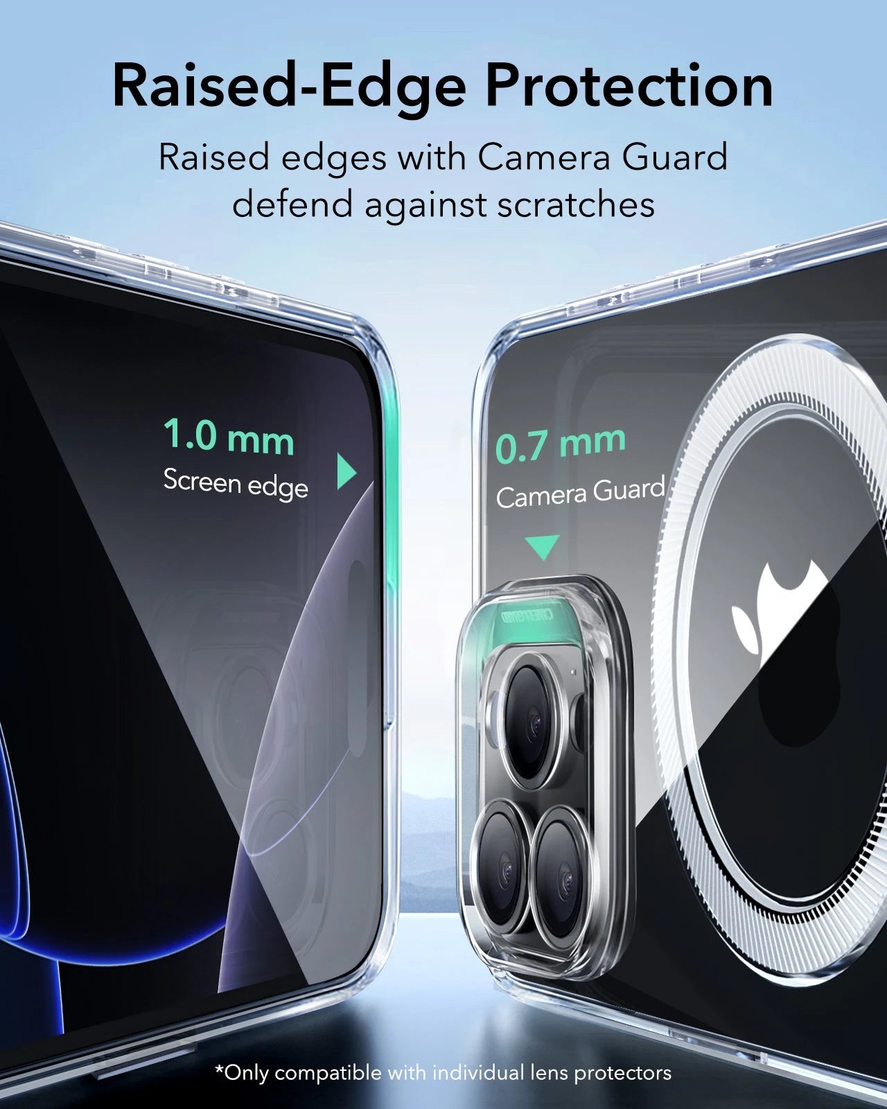 Erhöhter Displayrand und Camera Guard Linsenrahmen