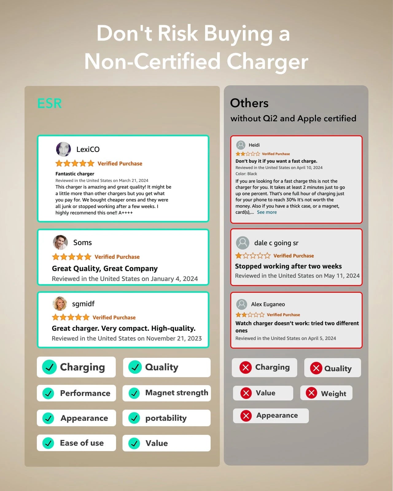 This does what it’s supposed to do, charge your devices. The iPhone charging is good. The magnet holds tight. But, you need a high output charger to make it work. The included one is good, but my standard wall wart doesn’t cut it. The Apple Watch aspect is good, but the magnet that holds the watch seems kind of weak. I’ve had it not charge because I didn’t confirm that it was truly on correctly. The charger that comes with the watch is better in that it snaps tight. As long as you are aware, it’s ok. It can also be removed and used separately. The Air pod charger is unknown at this point as I don’t have that device. The carrying case is pretty big considering the size of the charger, but, it’s well padded. Overall, if the watch holder magnet was stronger, this would be very good.
