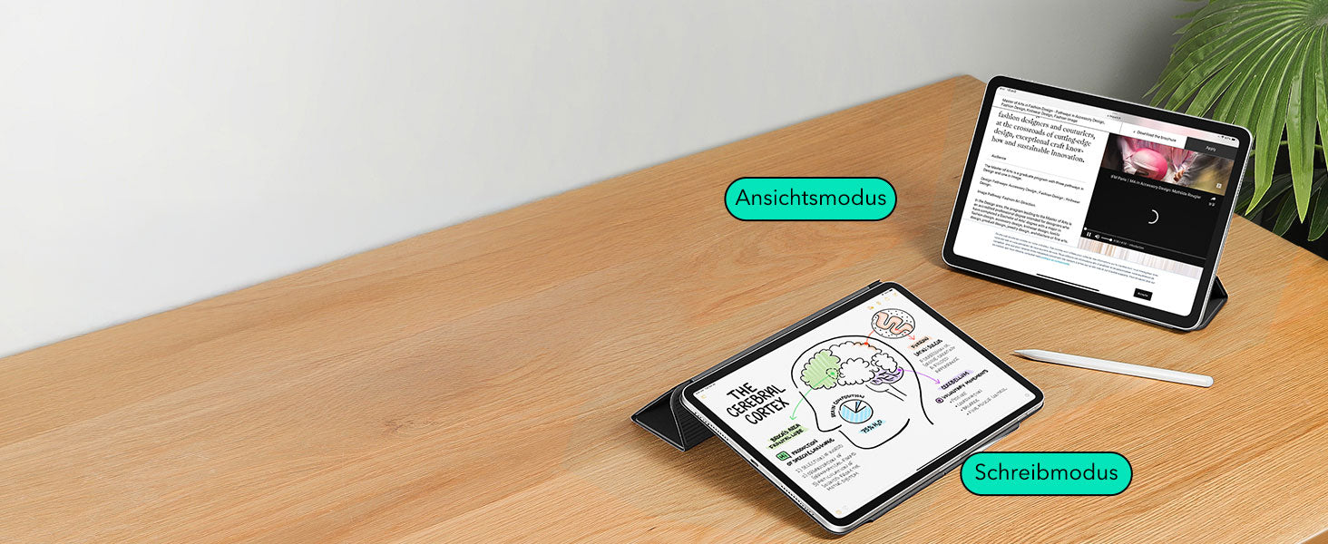 Ja. Die starken Magnete der dreifach faltbaren Frontabdeckung ermöglichen ein einfaches Zusammenklappen in einen stabilen Ständer zum Schreiben, Tippen oder Ansehen von Videos.