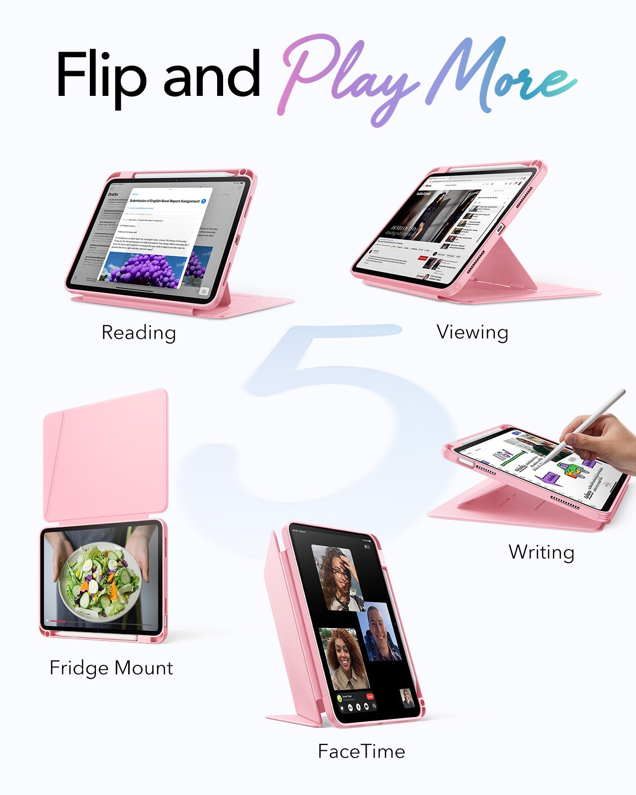 Drei Aufstellwinkel im Querformat bieten die perfekte Position für alles – Filme schauen, schreiben oder Videoanrufe. Im Hochformat eignet sich die Hülle ideal zum Browsen. Der Stifthalter stört nicht beim magnetischen Laden und bleibt auch auf weichen Unterlagen wie Sofa, Bett oder Schoß überraschend stabil – kein Verrutschen mehr.