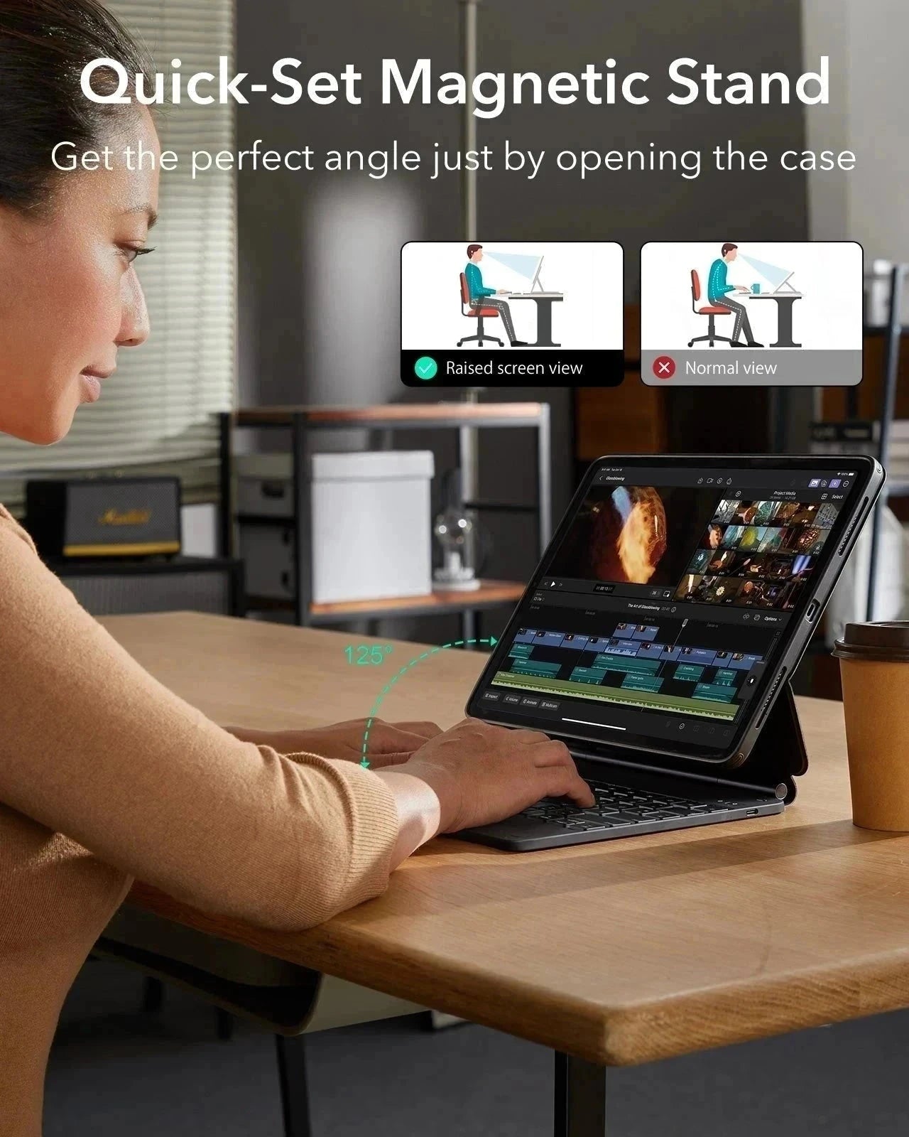 Quick-Set-Magnetständer: Ultrastarke Magnete verbinden Hülle und Tablet nahtlos miteinander, sodass du den Ständer ganz einfach in den perfekten Winkel zum Tippen oder Surfen öffnen kannst