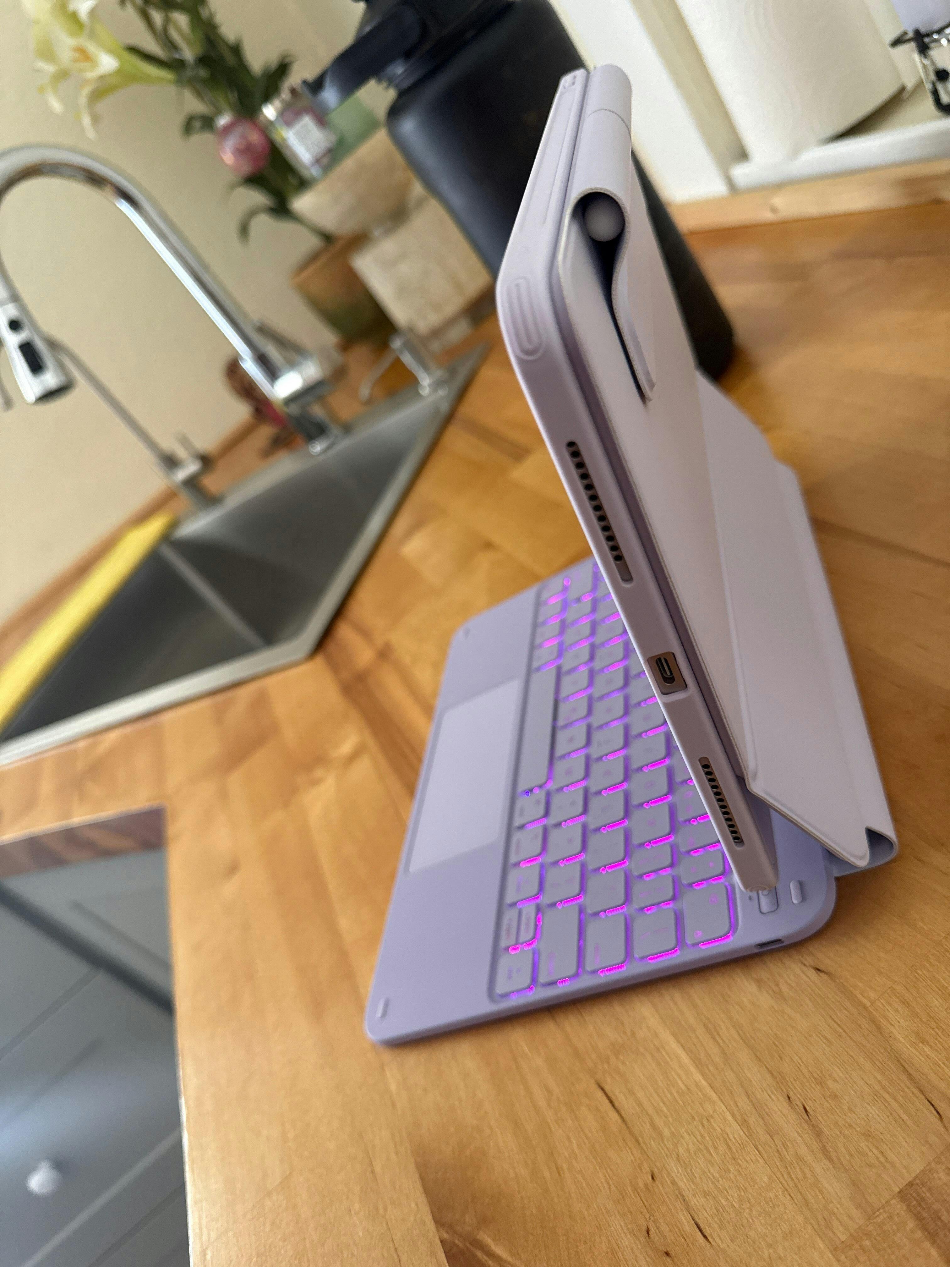 so far i am loving the keyboard/case combo ! it is a bit heavy but it does provide protection for my iPad Air. the case is so cute. i wish there was a pocket to put my apple pencil in. i also wish that the angle of view can be 130 or 140. but the multi view mode of having my iPad Air higher is definitely a huge plus.