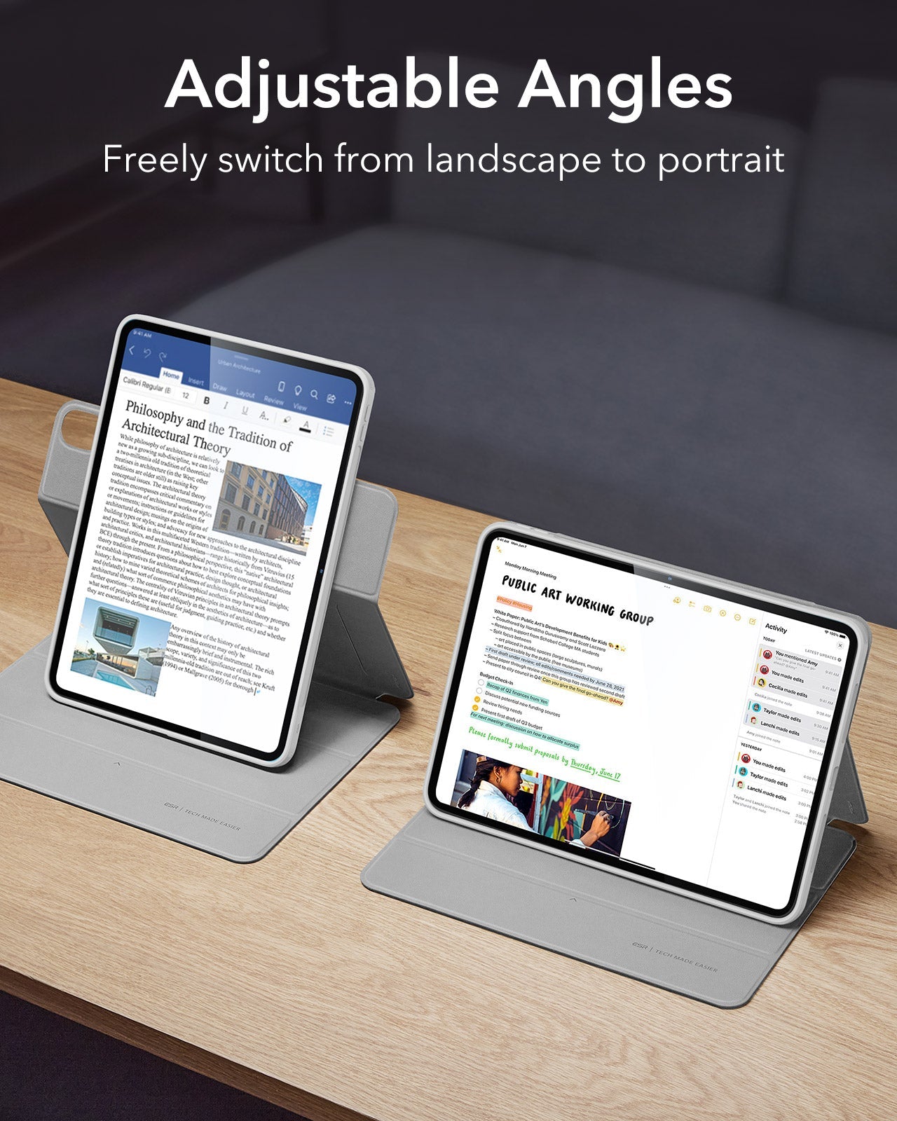 Vielfältige Nutzungsmodi: Verwandle dein iPad für jede Aufgabe mit 6 einzigartigen Modi, einschließlich einstellbarer Hoch- und Querformat-Positionen.