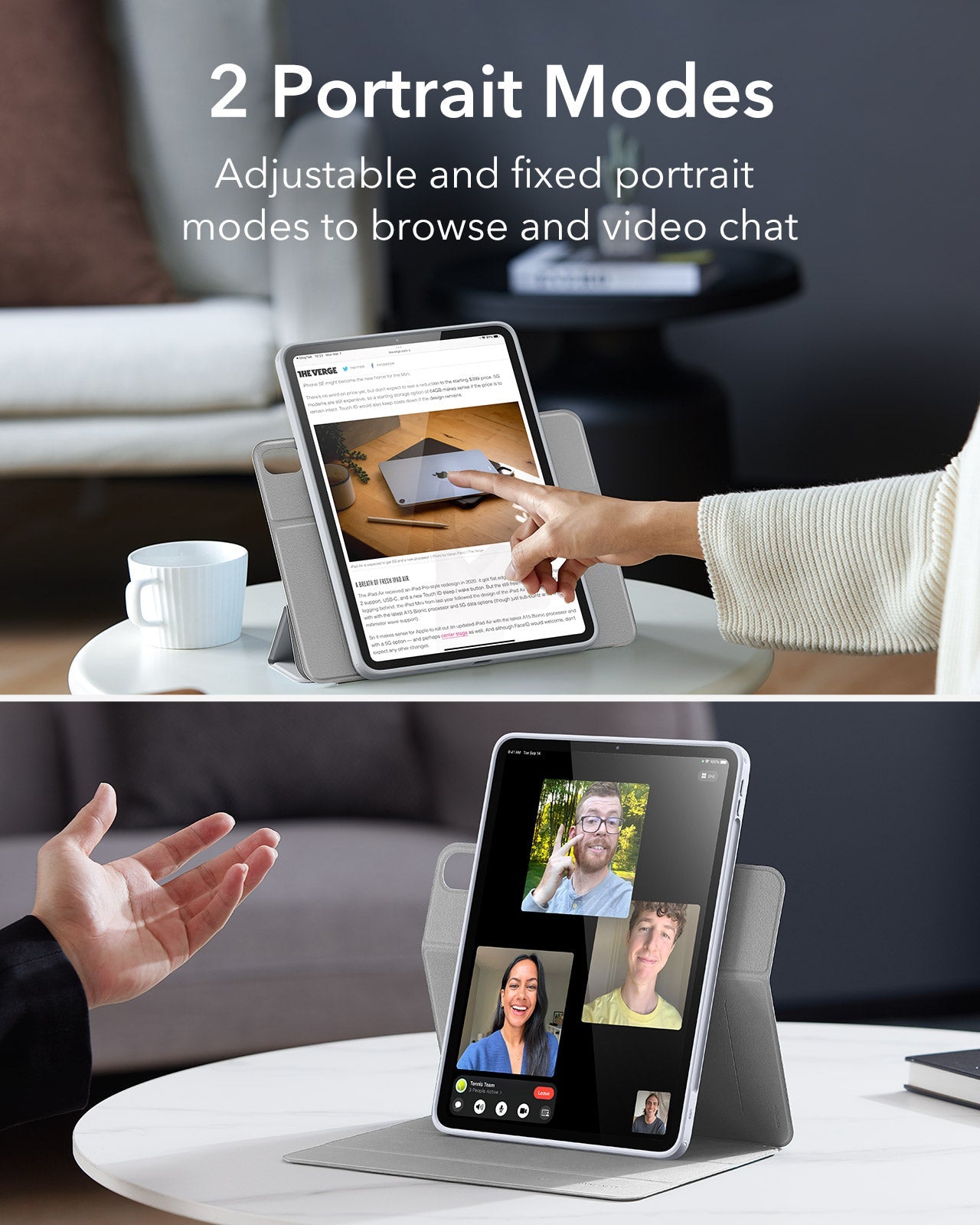 Yes, you can adjust your iPad to different angles in landscape for watching videos or portrait for FaceTiming and browsing.