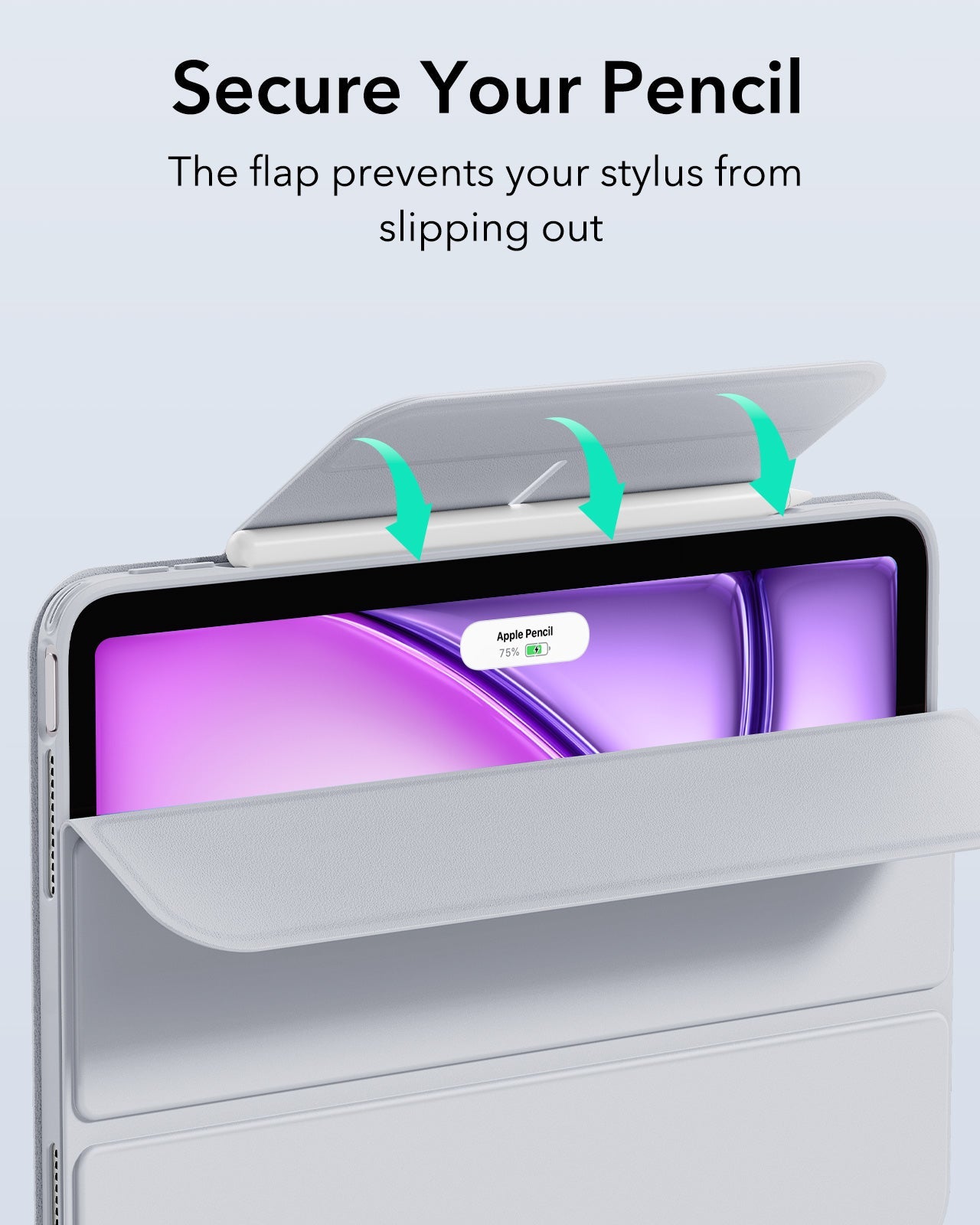 Verwandle dein iPad mit 6 Nutzungsmodi für Arbeit, Unterhaltung und Gaming. Die magnetische Abdeckung dient gleichzeitig als Stand und bietet vollständigen Schutz. Halte deinen Apple Pencil Pro oder Pencil (USB-C) sicher und aufgeladen – ideal für den täglichen Gebrauch.