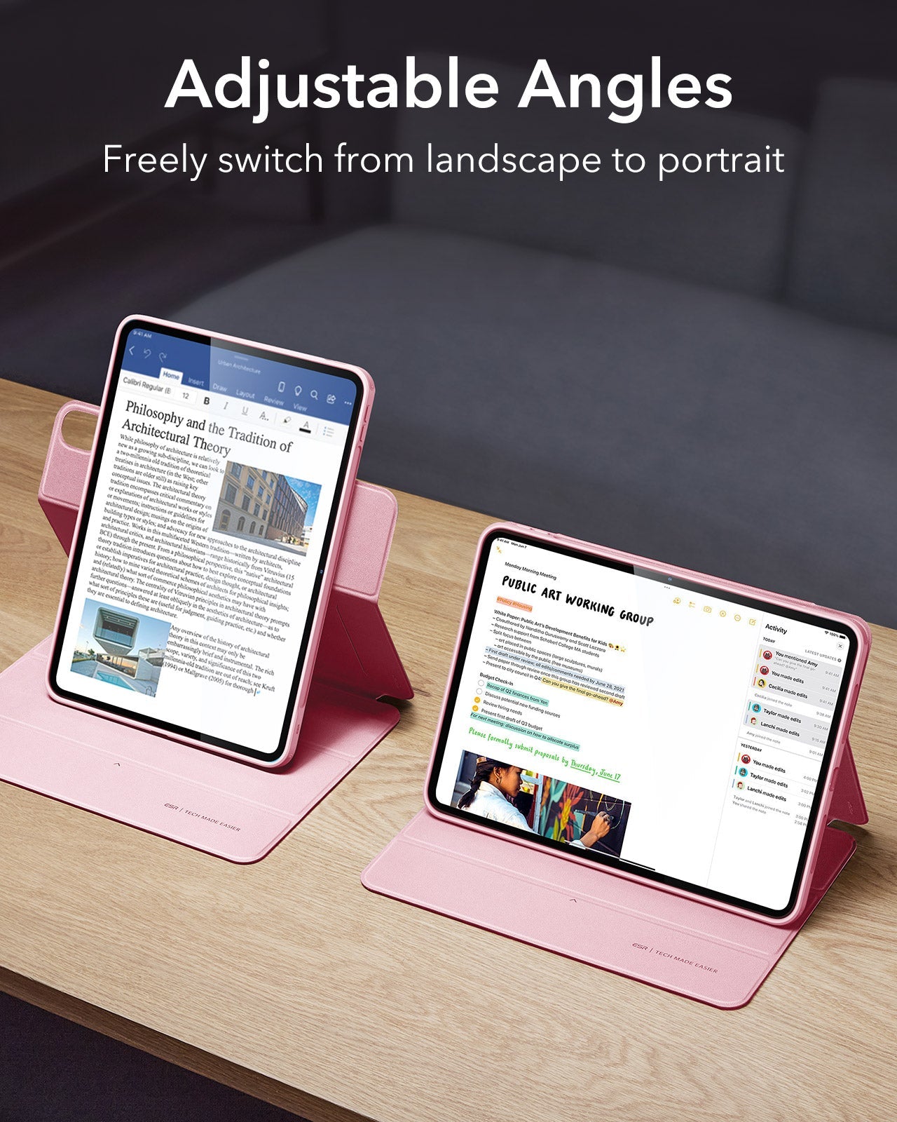 Yes, you can adjust your iPad to different angles in landscape for watching videos or portrait for FaceTiming and browsing.