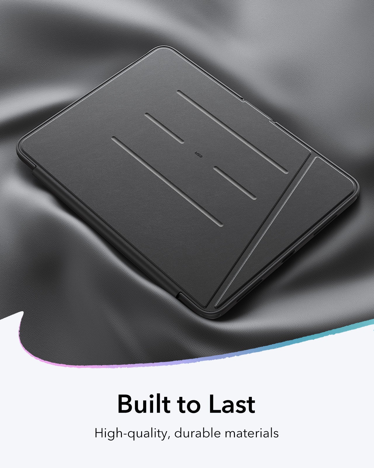 Drei Aufstellwinkel im Querformat bieten die perfekte Position für alles – Filme schauen, schreiben oder Videoanrufe. Im Hochformat eignet sich die Hülle ideal zum Browsen. Der Stifthalter stört nicht beim magnetischen Laden und bleibt auch auf weichen Unterlagen wie Sofa, Bett oder Schoß überraschend stabil – kein Verrutschen mehr.