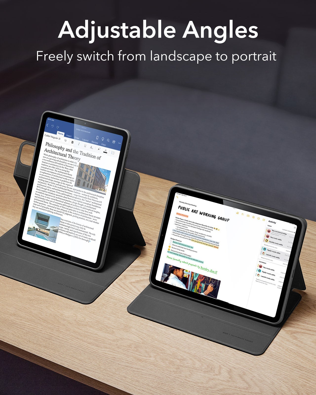 Yes, you can adjust your iPad to different angles in landscape for watching videos or portrait for FaceTiming and browsing.