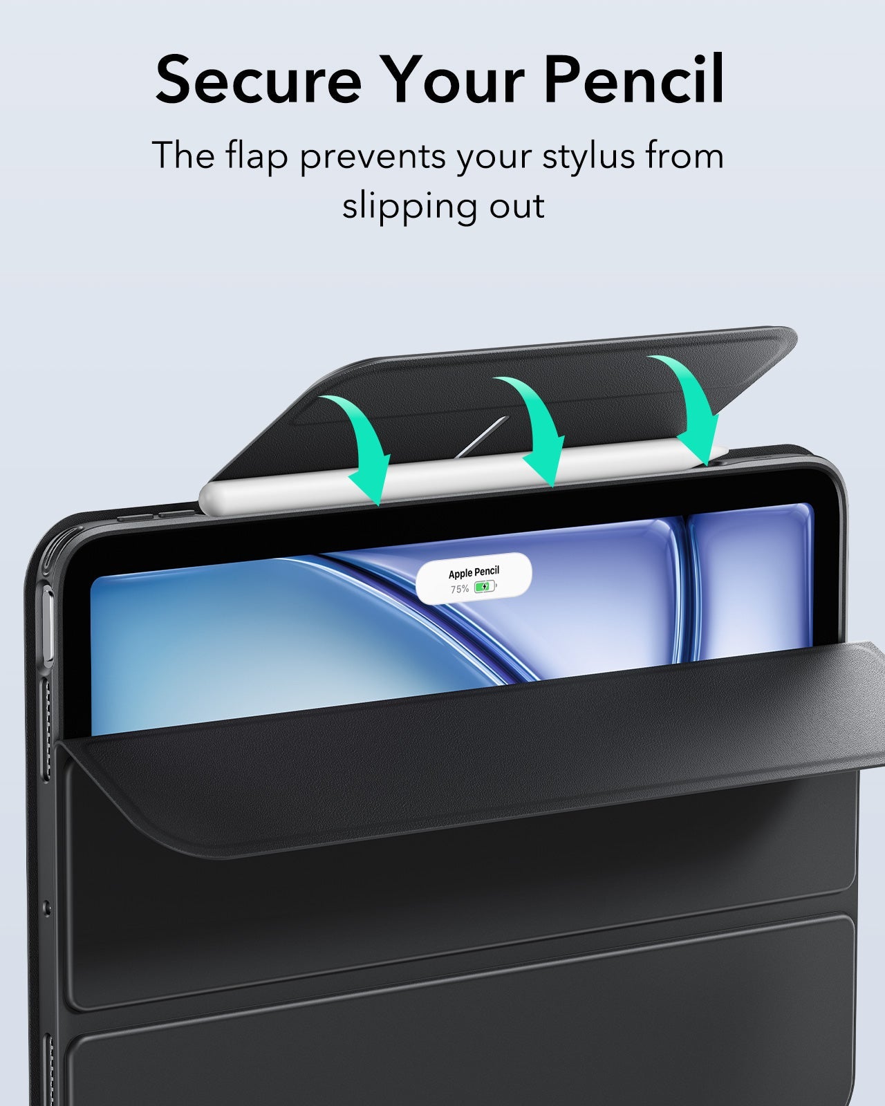 Unterstützt Pencil Pro und Pencil (USB-C): Die Hülle ist vollständig kompatibel mit Apple Pencil Pro und Apple Pencil (USB-C), mit einer seitlichen Nut für magnetisches Laden und einem Verschluss, der den Stylus sicher hält.