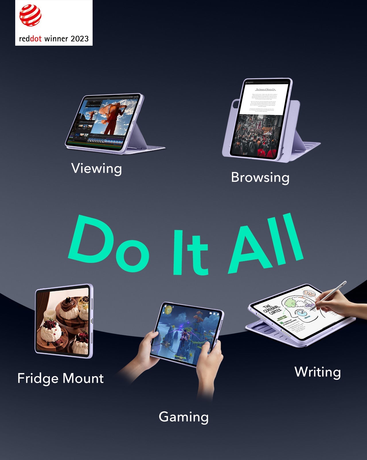 The all-in-one magnetic iPad case with a detachable stand gives you 6 viewing angles and 3 writing angles. Easily switch between portrait and landscape, while keeping your iPad fully protected for work, creativity, and entertainment.