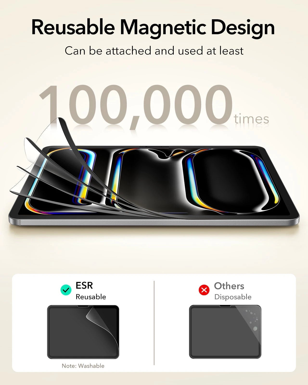 Protector can be attached and used at least 100,000 times