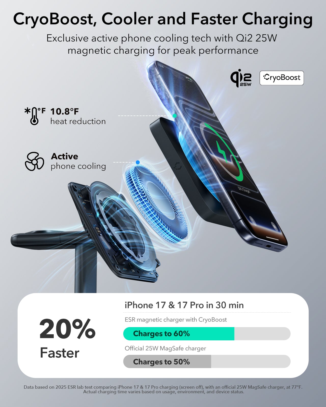 Station de charge avec CryoBoost 3-en-1 (25 W, Qi2.2) - US Plug–Black