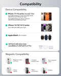 Compatibilité : iPhones avec MagSafe (série 12 ou plus récente), iPhone 16e*, Série Galaxy S23 ou plus récent* *Compatible avec la charge magnétique avec une coque magnétique de moins de 2 mm d’épaisseur