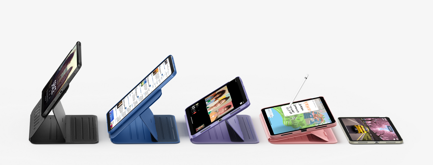 A magnetic stand case with 6 unique use modes