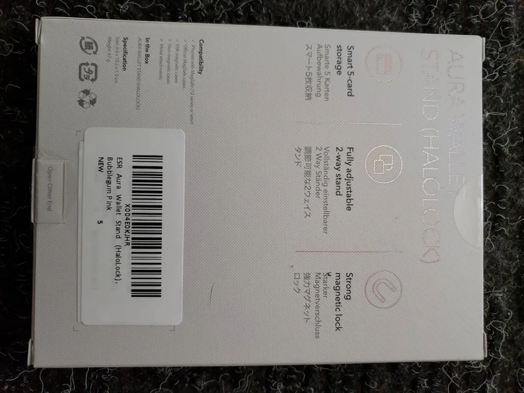 Excellent magsafe wallet that holds up to five cards and has a strong hinge for functioning as a stand as well. When folded down, the wallet is slim, discreet and fits well in pant pockets. The colour is as shown and the design of the wallet makes it easy to retrieve cards as needed. I like that this wallet is multifunctional and when not in use is easily stored away given its small and slim form.