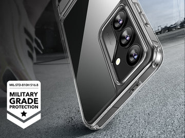 This case has test-certified military-grade protection and is reinforced with shock-absorbing Air Guard corners. Its scratch-resistant acrylic back, raised screen edge and Camera Guard also protect your phone against bumps and drops.