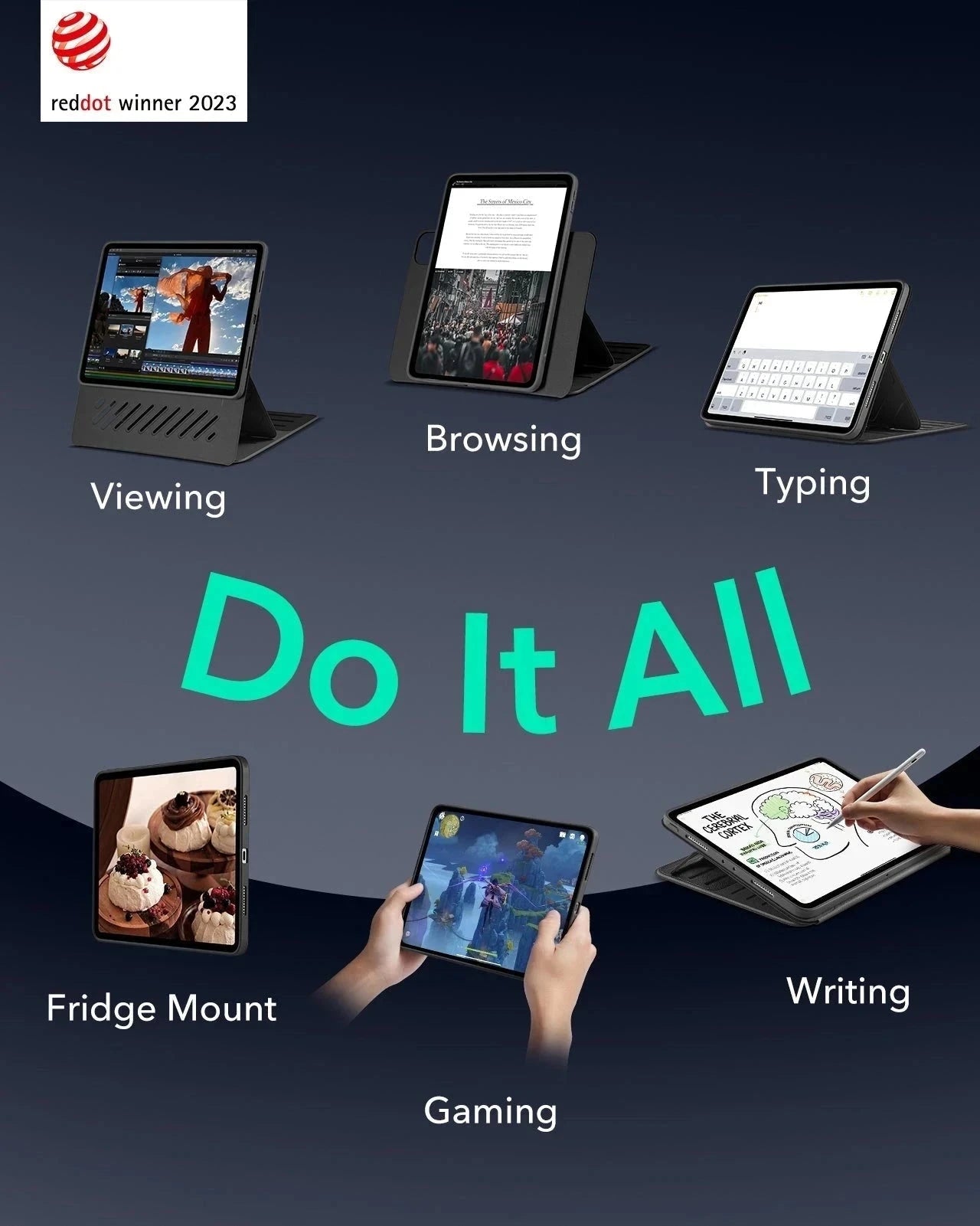 Powerful Versatility: achieve up to 9 different angles, 6 for viewing and 3 for writing, via the dual support brackets and 6 magnetic grooves, then instantly detach for hands-on gaming or to magnetically attach to your fridge