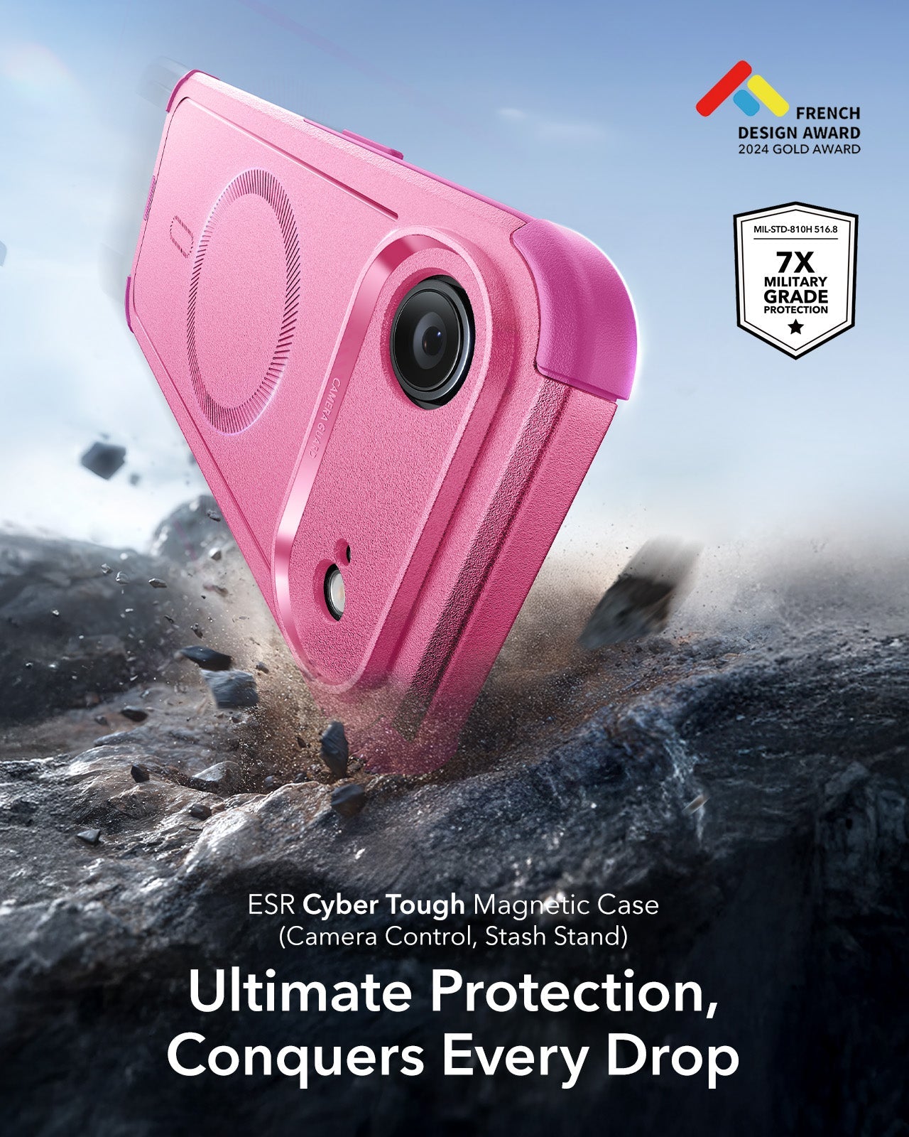 ESR iPhone 17 Air Cyber Tough Magsafe Case with Camera Control Pink Military Grade Protection
